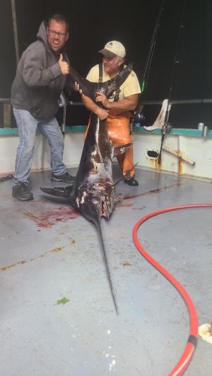 Capt J.R. reports an great trip on the Viking Star. They had some really excellent fishing during their first night. There were much larger sized Tuna than we have been seeing during our previous trips. Our largest Tuna of the trip was a 91 lb Yellow Fin, but was not entered in the pool. Fish were flying in the boat and they ran out of places to store them and ice reserves were almost totally depleted. They ended the night with 4 Swordfish and their limit of Tuna on the boat. After an excellent trip they were able head in early loaded up! The pool winner went to Frank Stoutenburgh with a 81lb Albacore Tuna. Be on the look out as we are adding our last Tuna trip of the season to the schedule soon.
