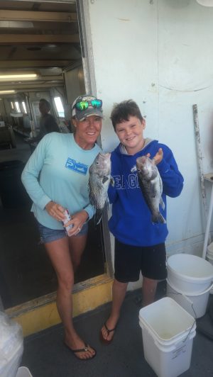 Capt JR reports great fishing today on the Viking Star for our afternoon portion of the half day trip. Fishing started out very good this afternoon on the Viking Star. We had a good mix of SeaBass and KEEPER Fluke coming up all around the boat with a few Porgies sprinkled in. As the tide eased off the action slowed slightly, but stayed steady till the end of the trip. Overall great turn out and great fishing this afternoon. The first place pool winner went to Lynn Huebner from Monroe, CT with a 4.5 lb Fluke. The second place pool winner went to Kailey Huebner from Monroe, CT with a 3.8 lb Fluke. 8am 1/2 day fishing is cancelled for tomorrow.